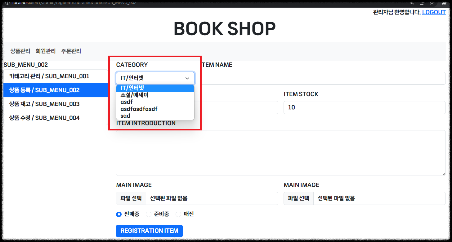 이런식으로 option에 지정된 카테고리 이름 속성들이 나열되는 것을 확인할 수 있다.
