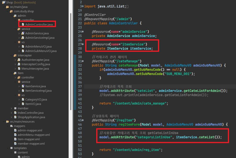 AdminService 인터페이스, AdminServiceImpl 클래스