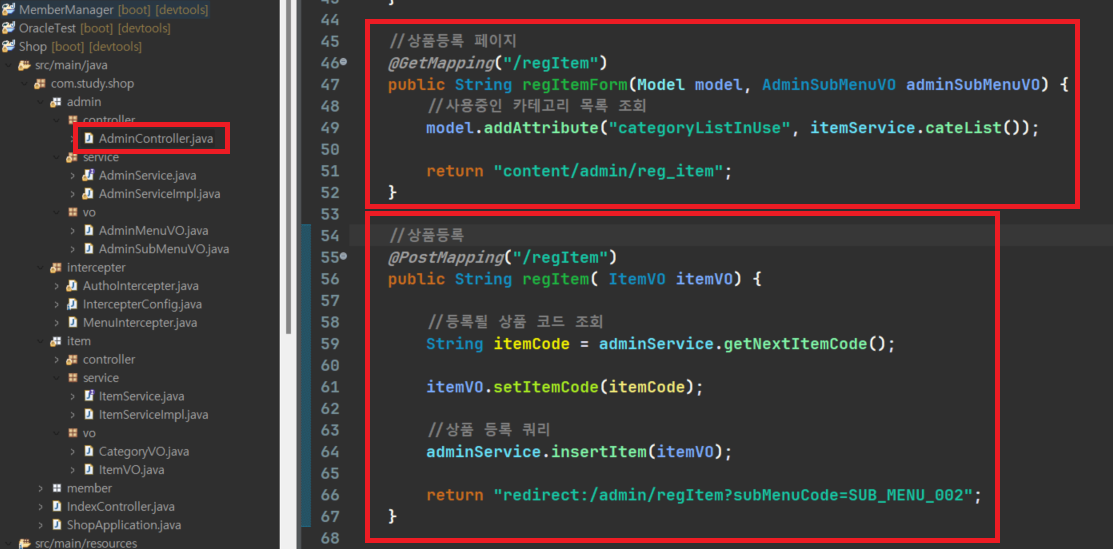 //상품등록 페이지 에서 @GetMapping으로 받은 경로를 둔 상태로