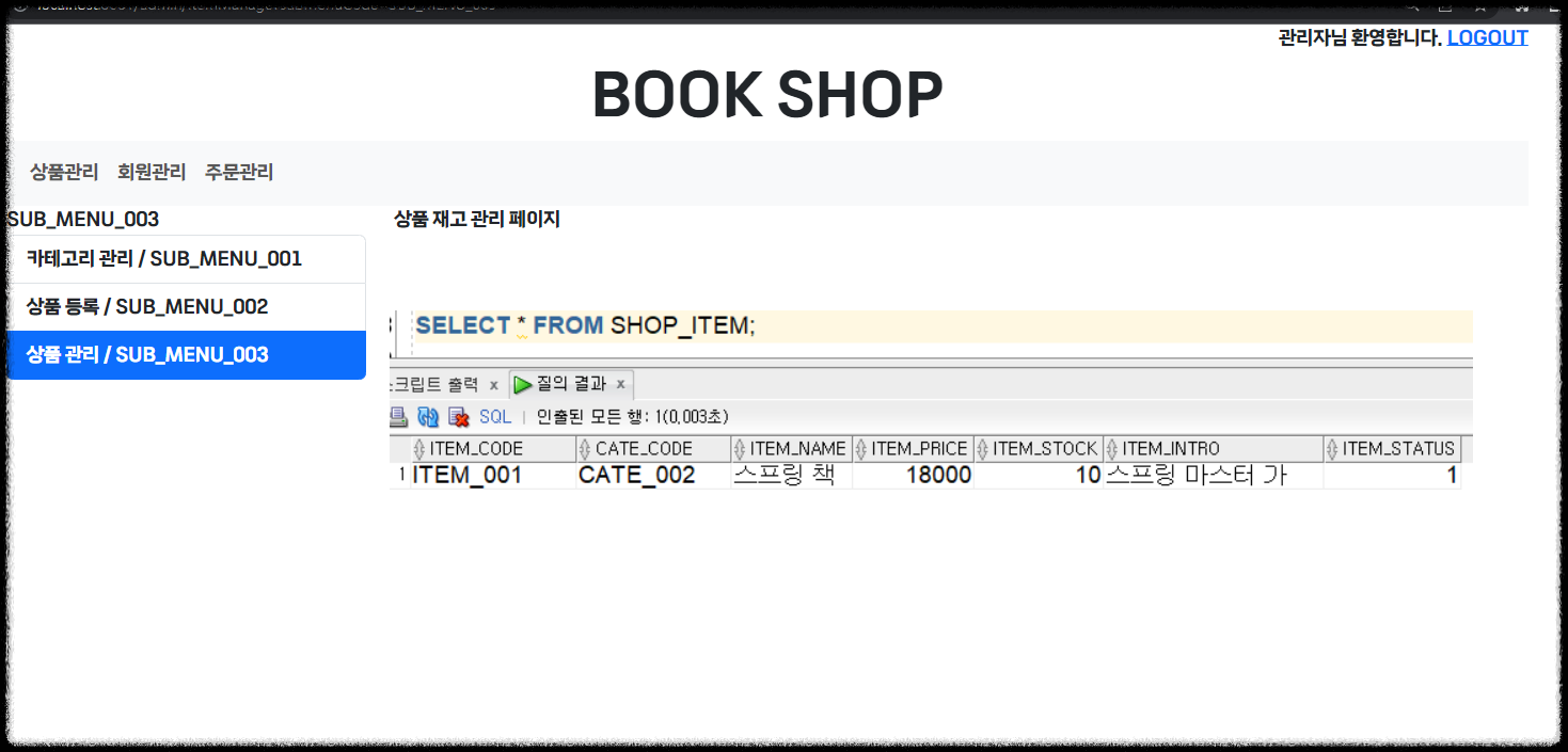 상품등록 페이지에서 이전에 만들었던 쿼리문을 model에 넣어 리스트를 조회한다.