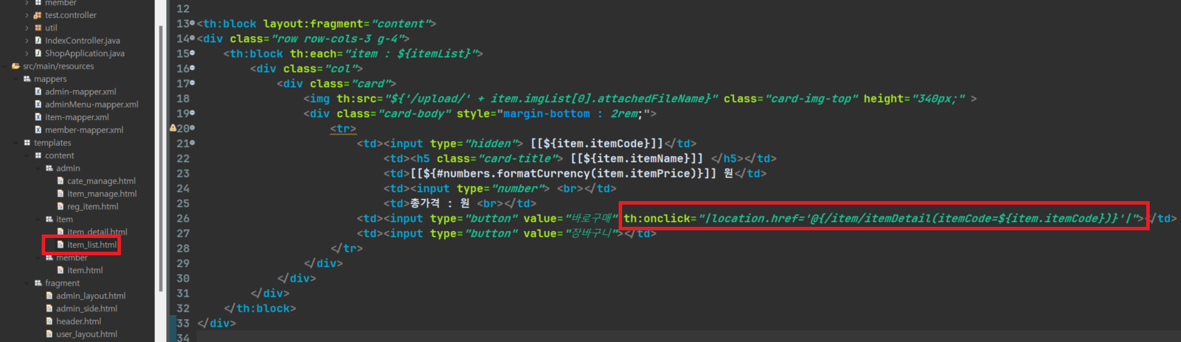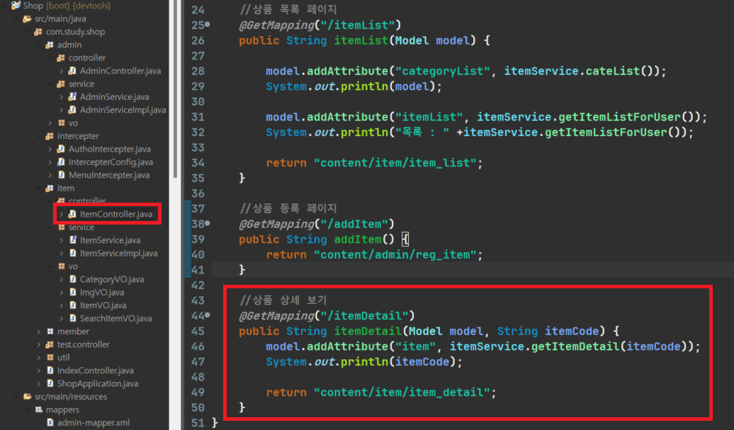 item_list에서 itemCode를 가지고 컨트롤러로 갔기 때문에 해당 itemCode가 조회될 것이다.