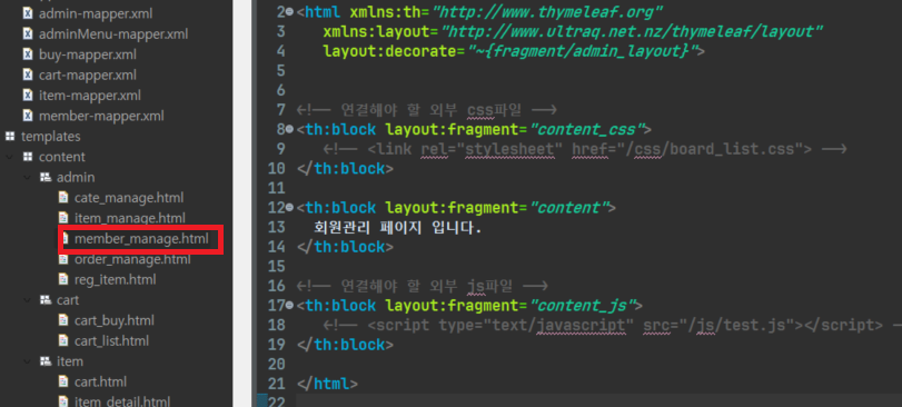 다음은 상품관리, 회원관리, 주문관리를 누를때마다 각각 서브메뉴를 바꿔보도록 해보자.
