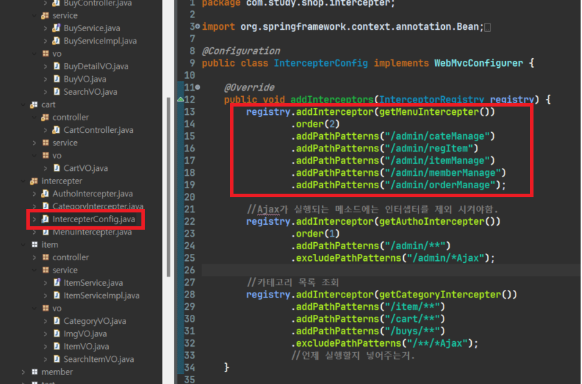 InterceptorConfig 에서 해당 메소드에 addPathPatterns에 컨트롤러 주소를 넣어주면 html에 가기 전에 실행되게된다.