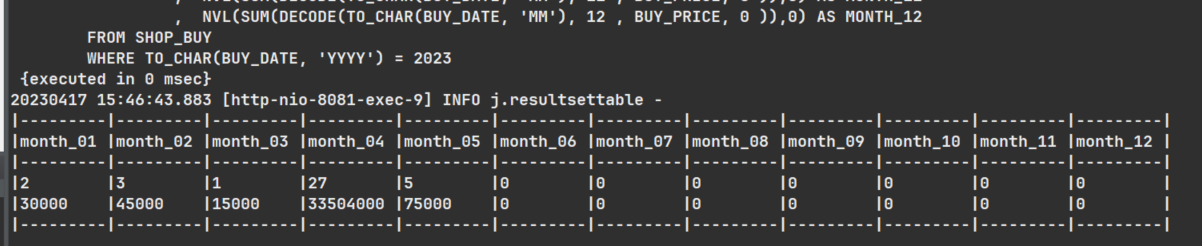 단, 데이터가 하나도 안나오면 NULL 때문에 SUM해도 값이 안나와서 변화가 없다.