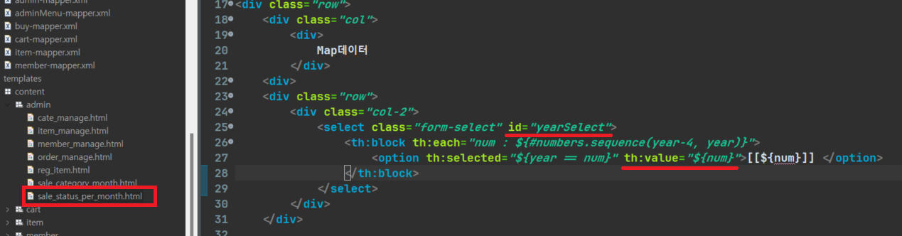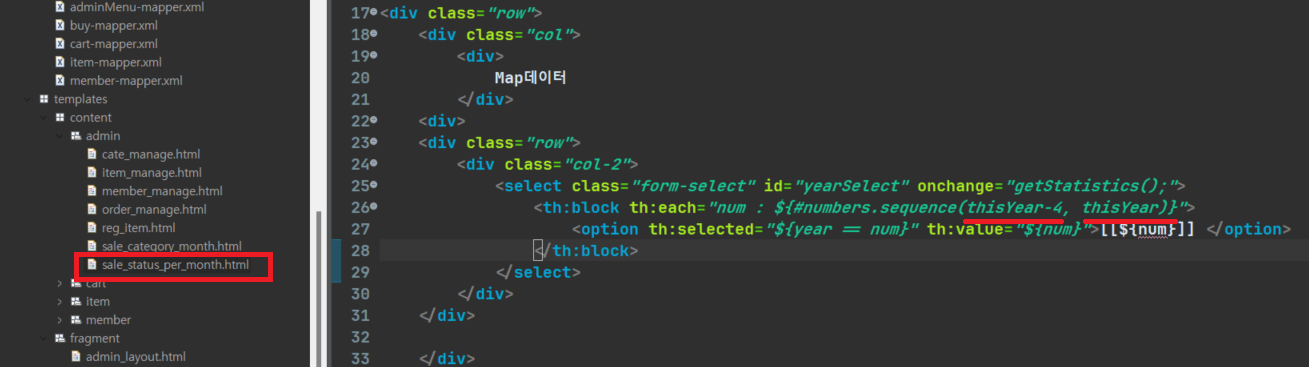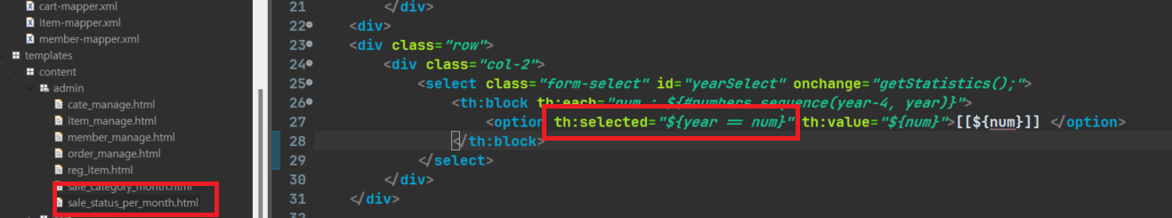 그렇기 때문에 html에서 selected로 계속 2023년 데이터가 고정되게된다.
