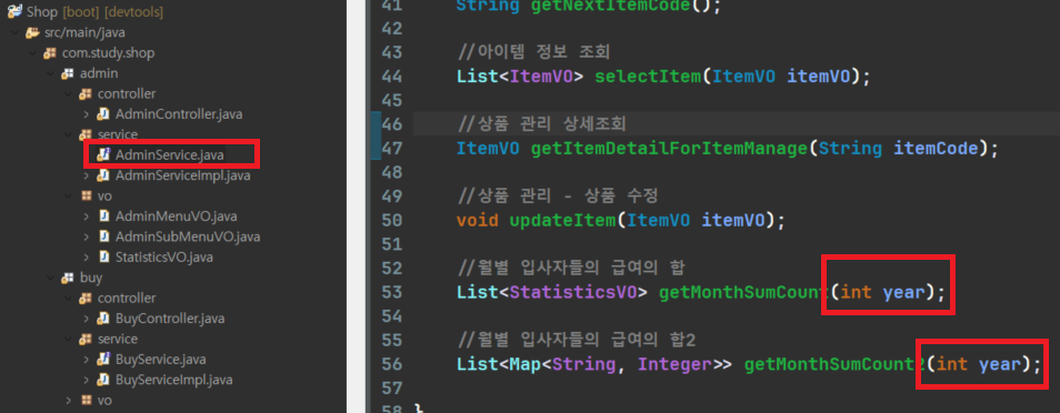 mapper에서 year 데이터에 맞는 값들이 조회되야 하므로, 매개변수로 year값 하나를 조건으로 데이터를 넣어준다.