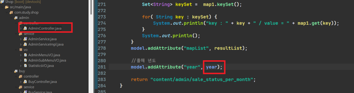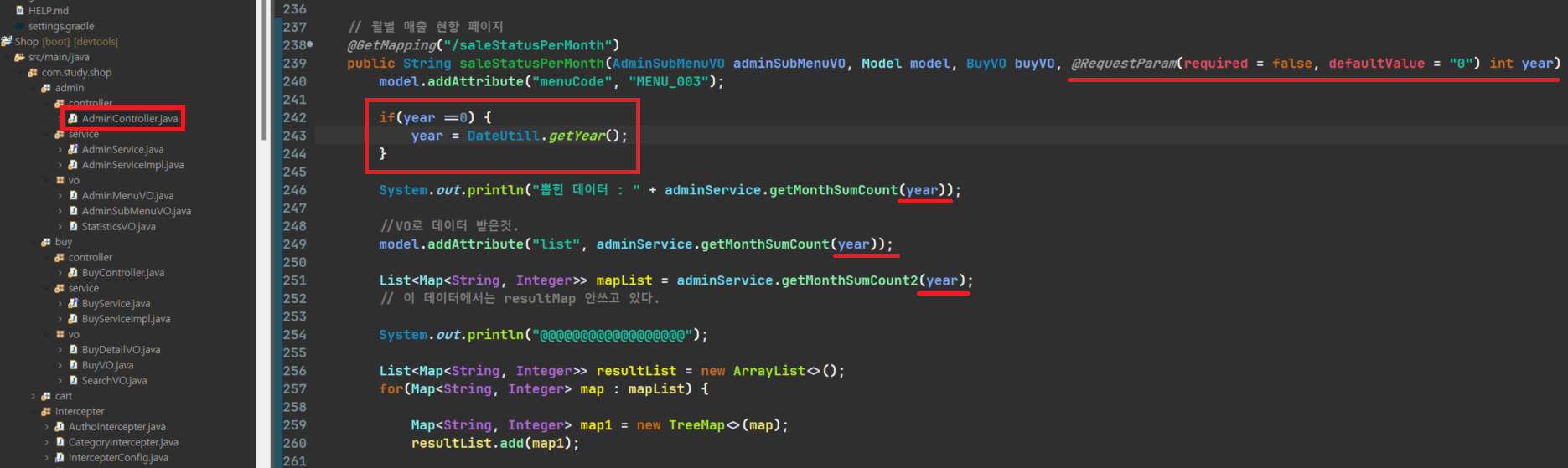 Service에서 매개변수로 year을 추가해줬으니 똑같이 year을 넣어주었따.