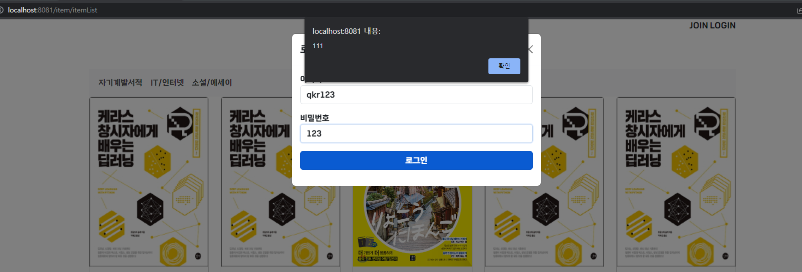 로그인을 누르면 이렇게 알람 창으로 111이 뜬다.