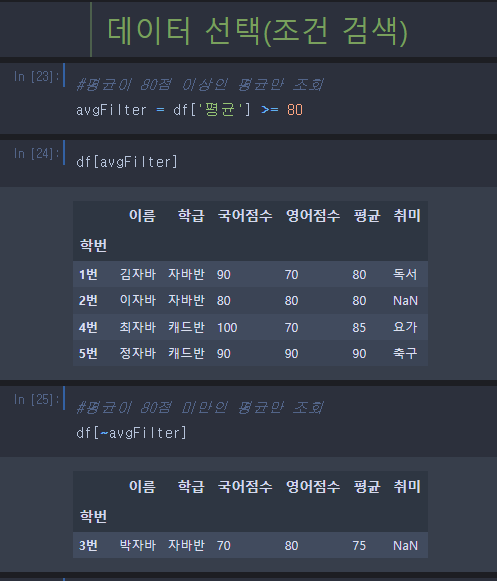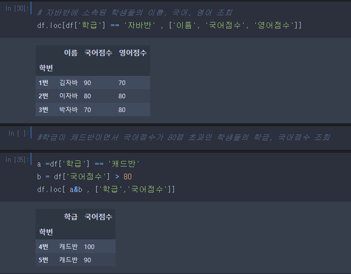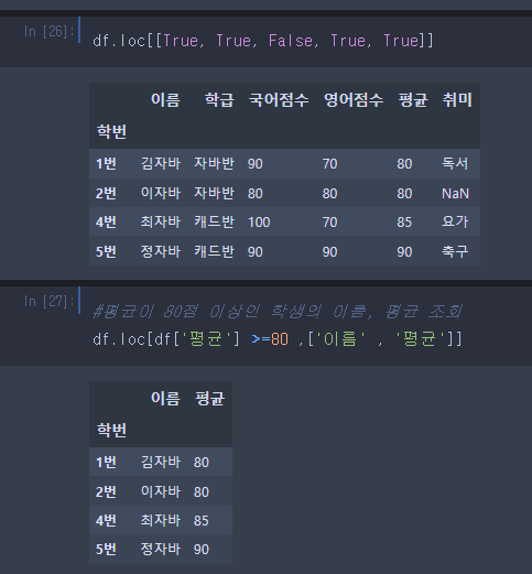 index_col='학번' 으로 학번을 기본 인덱스로 갖도록 불러도 와보았다.