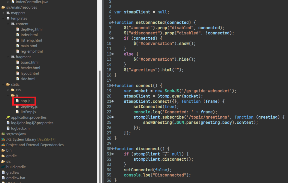 4. 이번 기능의 핵심인 STOMP를 만들어 준다.