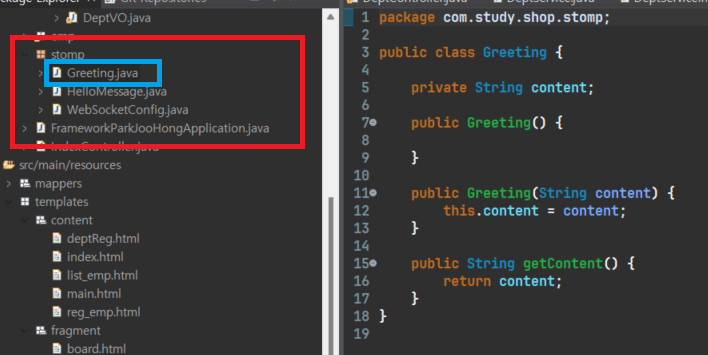 1 2 3 4 5 6 7 8 9 10 11 12 13 14 15 16 17 18 | package com.study.shop.stomp; public class Greeting { private String content; public Greeting() { } public Greeting(String content) { this.content = content; } public String getContent() { return content; } } | cs |