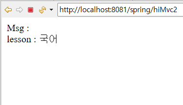 이 메서드는 "msg"라는 이름으로 "Hello Spring MVC"라는 데이터를 모델에 추가한다. 이 데이터는 뷰에서 사용된다.