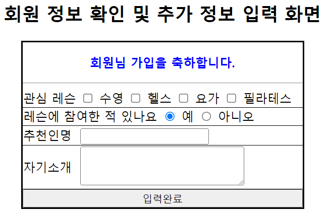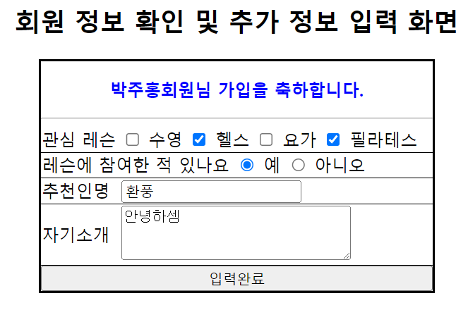 regMemberDetail.jsp (회원 정보 확인 및 추가 정보 입력 화면)