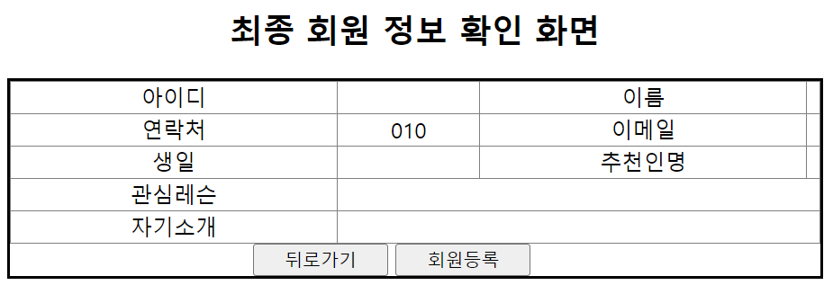 memberInfo.jsp (최종 회원 정보 확인 화면)