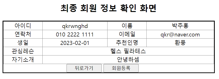 memberInfo.jsp (최종 회원 정보 확인 화면)