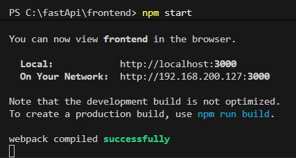 4. VisualStudio 에서 React 실행 명령하기 (npm start)