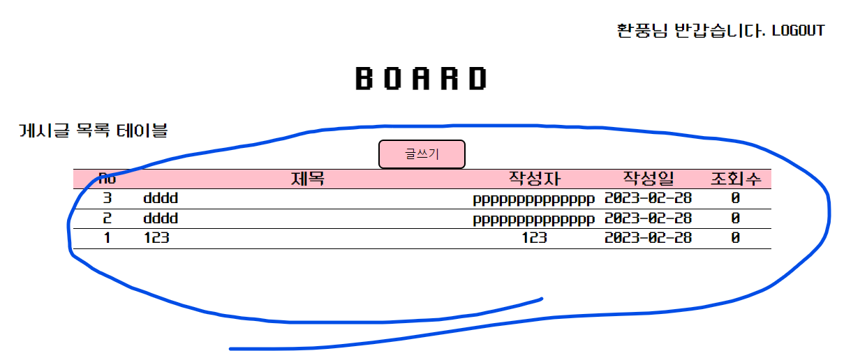 게시글 등록은 했다.select쿼리 결과는 위에서 게시한 글처럼 두 가지로 나뉘는데,