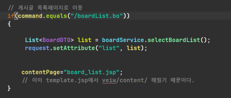 boardService 즉, 만들었던 쿼리문을 list에 넣어준다. 이후 list라는 이름으로 board_list.jsp에 뿌려줄 수 있다.